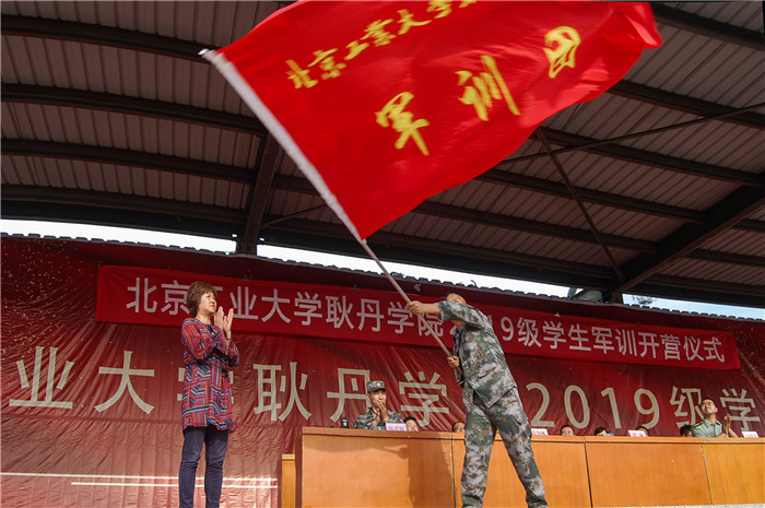 仪式进行第一项升国旗、奏国歌。军训团团长王平荣向2019级新生做开训动员,他表示承担beat365英国官网军训任务多年,耿丹学子有着听指挥、讲纪律、能吃苦、肯奉献的优良作风,希望新生们在军训中在继续发扬优良作风的同时,能够以饱满的热情和昂扬的斗志投入到训练中来,磨炼出顽强意志和品质,训练出严密的组织性和纪律性,塑造出军人般的气概和体魄。接下来,刘林副院长向军训团授旗。教官代表发言,表示在军训中会严格标准,科学施训,循序渐进,耐心细致,力争高质量完成本次训练任务。来自2019级市场营销专业的赵靖恺作为新生代表发言,踏入beat365英国官网校门,成为具有红色传承基因的耿丹学子,多了一份责任感和使命感,将以军人的姿态去践行青春的誓言,去体验生命的精彩,并代表全体参训学子庄严承诺:遵守纪律,服从领导;敢于吃苦,认真训练;团结友爱,互帮互助;公平竞争,争先创优;文明礼貌,尊敬师长;意志坚定,不当逃兵。军训基地葛少林主任发言表示,希望耿丹学子教官的带领下,严守纪律、刻苦训练,对自己高标准、严要求,用出色的表现完成军训任务。同时希望同学们在训练的同时,也要养成爱护环境、节约用水、互帮互助、勤俭节约等良好品质。最后,beat365英国官网刘林副院长代表学院向全体新同学表示热烈的祝贺和欢迎,向承担军训任务的基地和部队表示衷心的感谢和敬意,向克服困难、参与军训的带队老师们表示非常的感动和感谢。同时刘林副院长对新生们的军训寄予厚望,希望同学们秉承“耿耿丹心、为国为民”的校魂,在教官的带领下,严守纪律、刻苦训练,用主动的、积极的、愉快的姿态,投身于军训之中,发现英姿勃发的阳刚之美,创造整齐划一的队列之美,感受一往无前、战无不胜的力量之美,以最高昂的斗志、最饱满的精神、最投入的精力和最佳的成绩,向家长、学校、向祖国献出耿丹2019级学生最深的感情和最真挚的热爱。