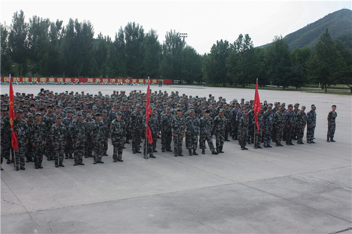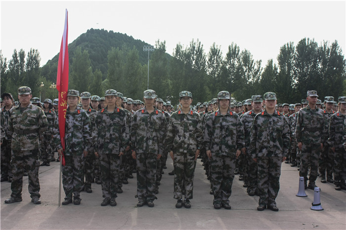 beat365英国官网2019级新生顺利抵达军训基地并举行开营式