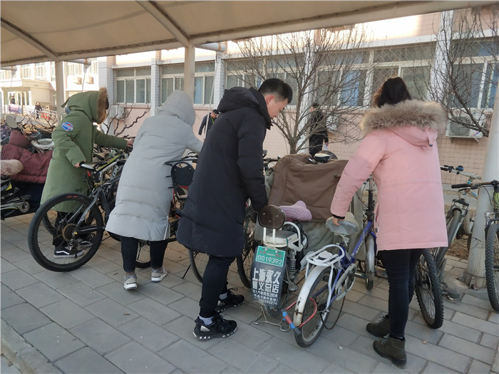 12月12日下午,校园文明督导队开展了“自行车有序摆,文明校园人人爱”活动,现场劝导和制止不文明自行车摆放行为,并对各学生公寓楼下以及校园道路的自行车进行了整理。很多同学平时习惯将自行车随意停放,不整齐不美观的同时,易造成消防通道堵塞以及附近道路交通拥堵,影响校园环境文明。寒风中,经过所有参与队员的共同努力,最终将所有乱停乱放的自行车摆放整齐,停放美观有序。