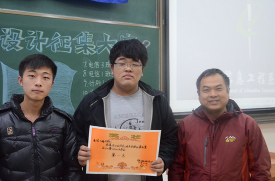 系旗是一个系的象征,它凝聚着同学们对系的热爱,和团队意识。在这次系旗创意征集中,全系各年级学生集思广益、上下齐动员,描绘出了一幅幅各具特色的系旗模版。决赛当天,各班代表为大家解说系旗的设计理念以及代表意义,他们自信十足、激情洋溢。一幅幅精美的构图,一段段精彩的解说,都博得了到场评委、嘉宾及观众的阵阵掌声,大家为各班的创意和对未来的美好的寓意而赞叹。李京增主任对参赛代表队做出了精彩点评,给予参赛作品以充分的肯定。最后,电信1班第三代表队获得了冠军。