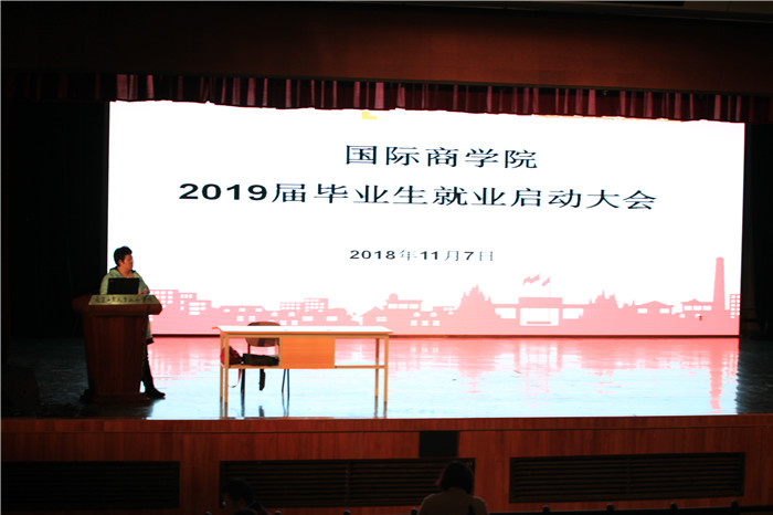 为了更好地了帮助同学们解新的就业形式,提升竞争力,推动就业工作的开展,2018年11月7日18:30,国际商学院2019届毕业生就业启动大会在耿丹讲堂举行。国际商学院副院长吕文威、招生就业处王站站、财务教研室主任陆娟、国贸教研室主任单文博、学工办负责人王霞、毕业生辅导员杨帆参加此次会议。会议由杨帆老师主持。