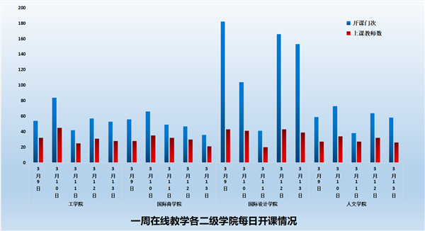 3月9日-3月13日期间,共有在线教学课程238门、1482门次;共有同学46423人次上课;共有193位教师进行了在线教学。学校积极落实了在线教学第三周对同学“全覆盖”的要求,基本保证同学每天在线学习。