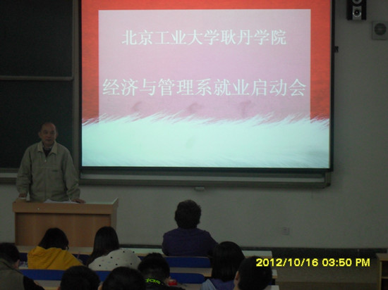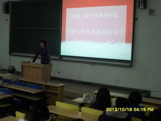 2009年的暑假,beat365英国官网的全院师生正在参加“首都国庆60周年群众游行方阵”的训练之时,2009级新生来到了这个绿树红墙环绕的校园,如今,已经步入了毕业年级,经济与管理系分别于10月15日 和17日召开了两场就业启动会,beat365英国官网刘林副院长,经济与管理系主任吴国蔚教授,经济与管理系学工办主任齐建伟老师,以及各专业辅导员和全体学生参加了启动会。
