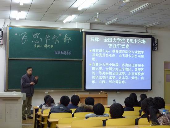 此次活动是为信息系参加全国“飞思卡尔”杯电子设计大赛的同学所做的专题讲座,旨在使各参赛小组了解大赛的具体流程、细则和使用技术问题。