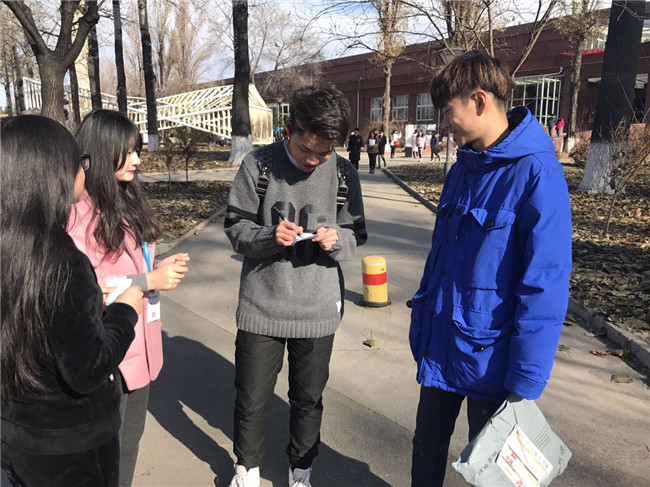 此次活动分为两部分,第一部分由青年志愿者协会的志愿者们亲手制作的贺卡,上面是同学们想对老师说的话及祝福,在感恩节当天,把贺卡送到老师们的手上,表达了同学们对老师的感激之情,感谢他们在生活上及学习上给予的帮助。第二部分是以“尊师重道,感恩相伴”为口号,签名直接表达教师的感恩之情。活动过程中,路过的同学们纷纷被吸引,加入我们感恩老师的行列中。他们在签字纸上留下自己的姓名并写下温馨的话语,例如“老师谢谢您”、“老师我爱您”等等,这些温暖的话构成了一副冬天里最美的画卷。同时,志愿者们呼吁大家感恩节当天见到老师问声好,上课时对老师说一声谢谢。