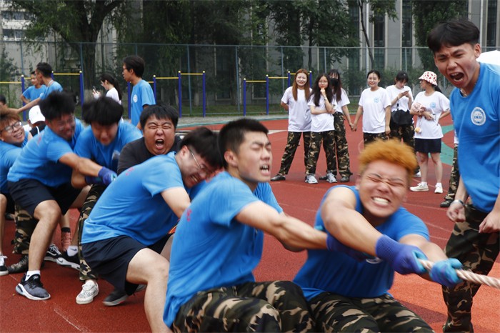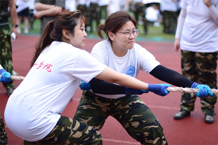 拔河比赛绝不是完全相似的,各有各的不同。在齐心协力拽绳的那一刻,我们胸中的欢乐与激荡,千言万语不足为道矣。比赛过程中,各连队参赛成员努力拼搏,无论是场上还是场下,气氛都异常紧张,富有节奏的呐喊声、加油声,充斥在操场上空,久久回荡。尤其是在胜负难分的时刻,大家毫不退却,咬紧牙关,坚持到底。同学们个个斗志昂扬,用他们的汗水为我们讲述了团结的含义,他们顽强的毅力与拼搏的精神让每一个人感动。现场观赛的同学个个热情高涨,呐喊助威,为比赛增添了一抹亮色,每一声呐喊都带来一股力量!