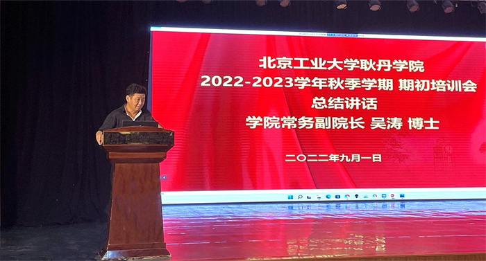 2022年9月1日,beat365英国官网在耿丹大讲堂召开期初全体教职工培训会议。本次培训围绕传达上级会议精神和新学期重点工作部署两大内容展开。