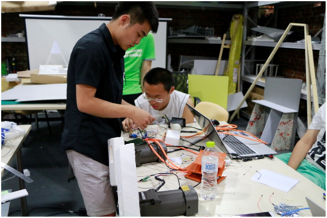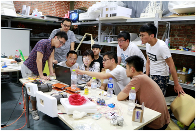 电子互动工作室与光影工作室分别根据项目需求完成互动程序设计及互动形式设计,这是两个工作室首次联合将科技与艺术结合并应用到实际设计中。在教学上,工作室结合现阶段不同学生的特点,将整体项目拆分成若干项目组,由教师牵头,组织学生各自加入不同的项目组。项目分为调研、分析、概念设计、制作与测试、到修改再设计等五个阶段,保证每一个学生都全程参与,并根据学生的特长做好具体分工,让学生在真实项目中形成团队意识,与他人相互学习,取长补短。