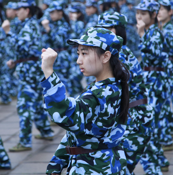 考虑到天气原因,教官们临时改变训练计划,压缩了室外训练的时间。在把预定科目训练完之后,在教官与老师的带领下,新生们来到屋檐下进行了拉歌比赛,此起彼伏的吼声,有板有眼的节奏久久回荡在军训场上空。