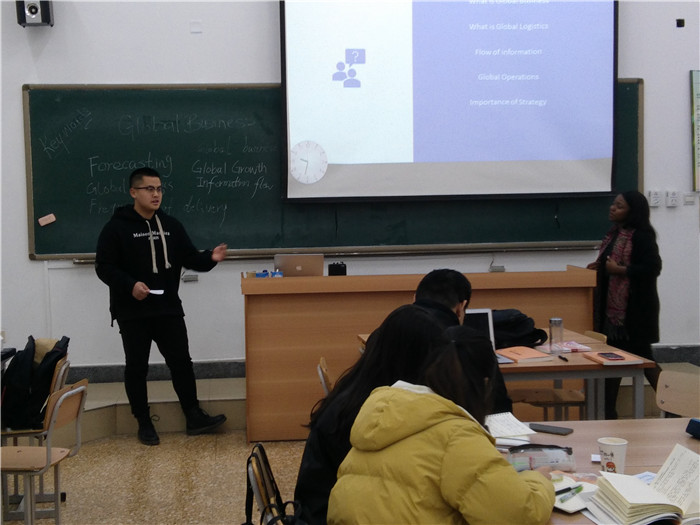 课堂上,国贸2016级国际班的同学们与老师Stephanie Jerry对课程涉及到的专业物流知识和国际文化背景进行了积极的交流与互动。师生间交流活跃,教学气氛融洽,充分体现了在地国际化的魅力。课程结束后,Steve Brent教授对授课质量以及学生们的反馈给予了高度评价。与此同时,Steve也提出了对全英文授课的几点建议。首先,他建议学生们在每学期课程开始之前,需要完成对本门课程相关英语单词的学习。其次,建议英语老师和专业授课老师要对专业课程进行研讨,英语老师需要了解全英文授课的专业课的课程进度,并在英语课堂上配合专业课英语进行教学。第三,Steve建议英语非母语的教师需要与外教多配合,共同教学,提高全英文授课能力。