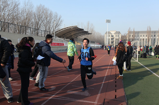 12:50分,随着沈自友副书记的一声令下,环院长跑正式开始。本次比赛以团体接力方式进行,每个班级代表队由8名同学组成,8名同学接力完成环校园长跑,用时最短的代表队胜出。赛场上各代表队奋勇争先,努力拼搏,紧张激烈的氛围给冬日的校园平添了别样的生机和活力。赛场外同学们互相鼓励,团结协作的场景随处可见,美丽校园里涌动着感人的暖流。最终,凭借不甘人后的勇气和良好的团队协作,机制12级、机制14-2班、工程14-1班等八个代表队获得了本次环院长跑比赛的前八名。