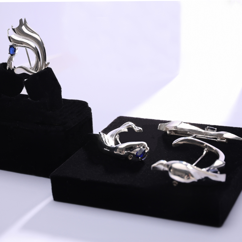 作品简介:本课题的“生命的能量”阐述自然界的三种生命形式,将蜜蜂、游隼、沙炽星融入首饰设计中,每一种生物都能在大自然中利用其本质特征去捕捉那些对其发展至关重要的能量信号。以动植物的优雅特征和身体构造为基础,将自然界中的形态与现代设计理念相结合,让首饰呈现出一种生动的画面感和强烈的动感。无论身处何种环境,都能像蜂群那样团结协作,如游隼一般勇往直前,在沙炽星象征的生命源泉之上,绽放出属于自己的璀璨光彩。本次课题最终呈现一共12件作品,分为三个子系列。《巢》以熊蜂、蜂巢为主要设计元素,运用珐琅工艺和宝石镶嵌,辅以暖黄色制作出。《速》以游隼俯冲捕食或飞行的姿态作为灵感来源进行动作提取设计。系列三《沙》,沙丘中生命力极强的沙炽星美丽且强韧。