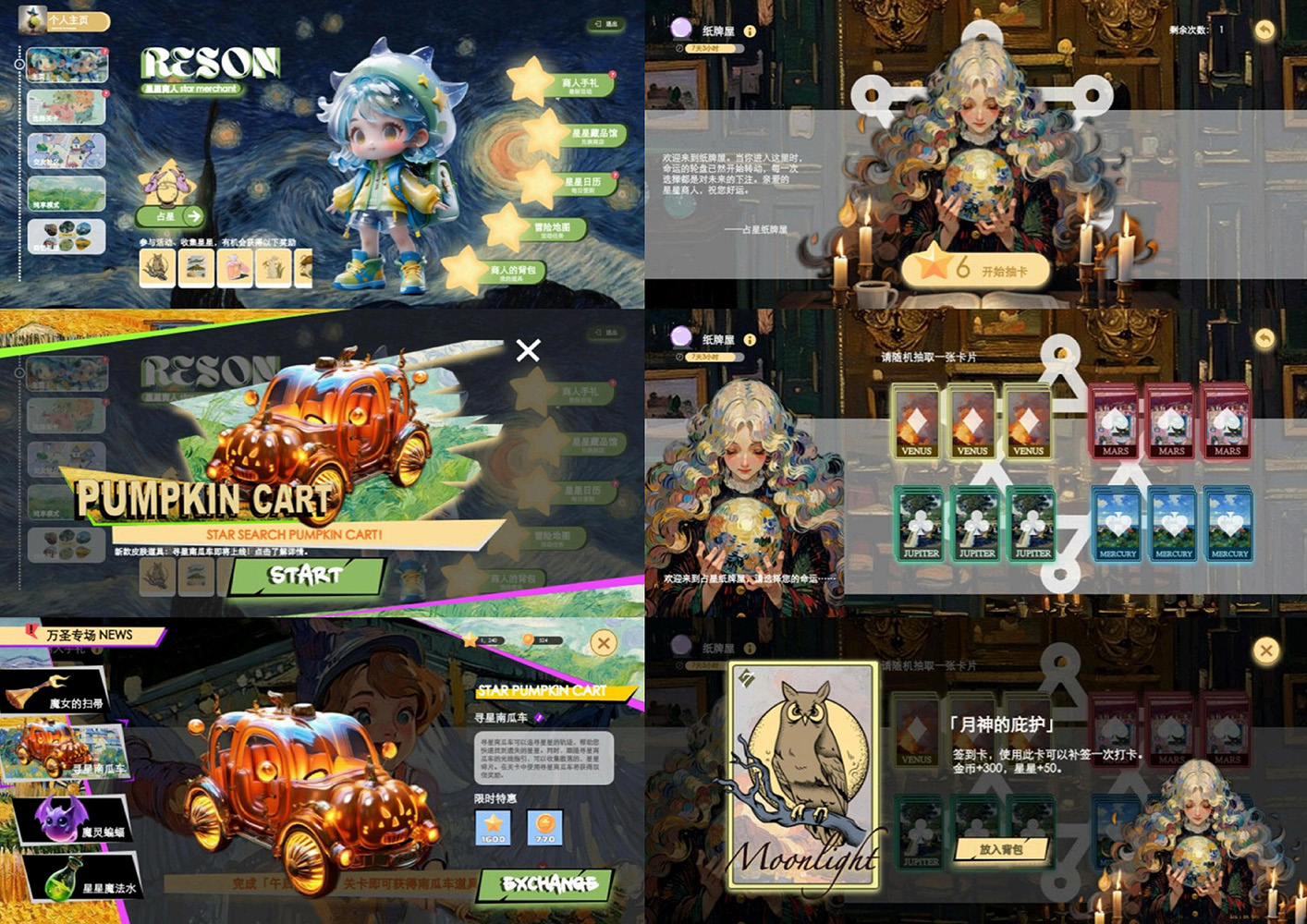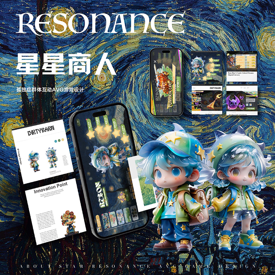 作品简介:本课题以“孤独症陪伴与干预”为主题,探索情感类互动游戏设计如何实现疗愈的功能性。《星星商人》是一款从孤独症患者视角出发设计的沉浸式AVG游戏,其内容涵盖了UI设计、角色创作与场景创作、互动机制和情感教育模型以及后端开发等。游戏以油画画风作为主视觉风格,搭配治愈的背景音乐,为玩家创造一个安全的沉浸式体验空间。通过互动的方式鼓励孤独症患者进行情感交流,同时也呼吁公众多多关注孤独症患者的真实世界。