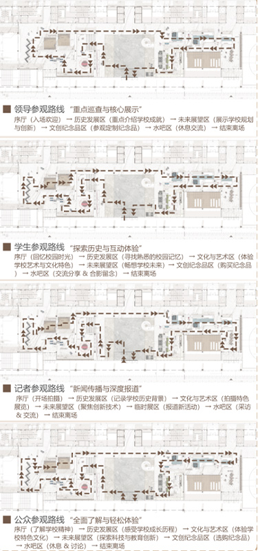 作品简介:本设计致力于通过创新的展陈设计,传承校园文化,提升空间体验,增强校史馆的教育功能与文化影响力。并以情感动线分析为核心的设计策略,将参观者的情感体验与校史馆的展示内容紧密结合,使参观者在参观过程中能够产生深刻的情感共鸣。