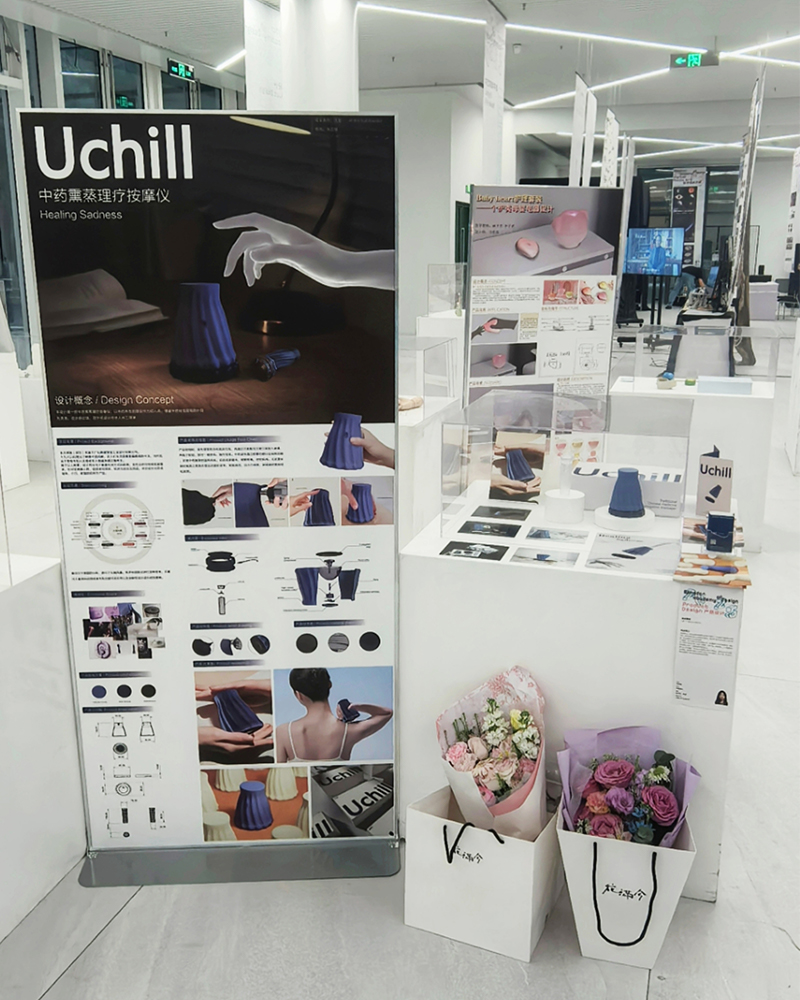 作品简介:这是一款将中国传统中药熏蒸养生理念结合在现代按摩仪上,可通过注入不同的中药液体来满足用户个性化使用体验的中药熏蒸理疗按摩仪设计,以中药养生为核心价值锚点,运用现代科技与创新设计理念,将传统中医药文化与现代生活方式深度融合。