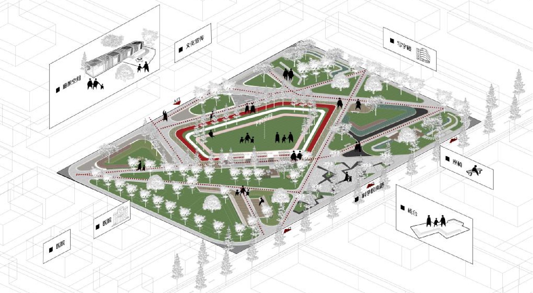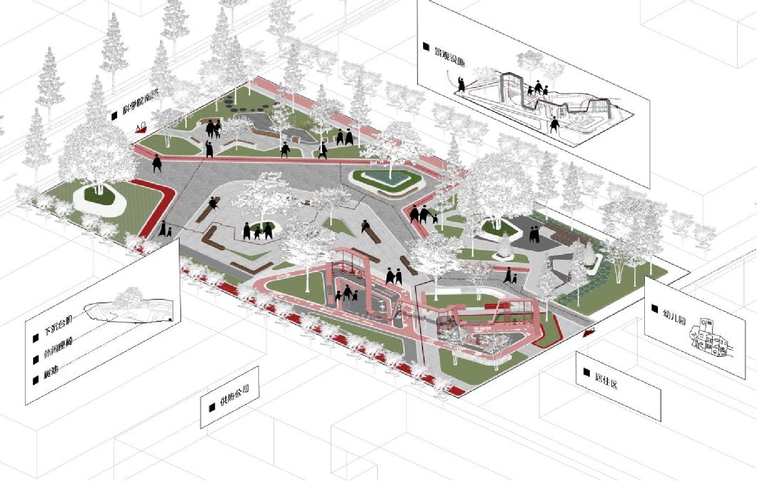 作品简介:本次街道改造思想以满足儿童使用功能为主,建筑与绿化相互融合,相辅相成,在体现场地设计的以人为本、因地制宜、崇尚自然的前提下与儿童自然教育相结合,通过对儿童自然缺失症针对性设计,打造社区街道中儿童乐园。