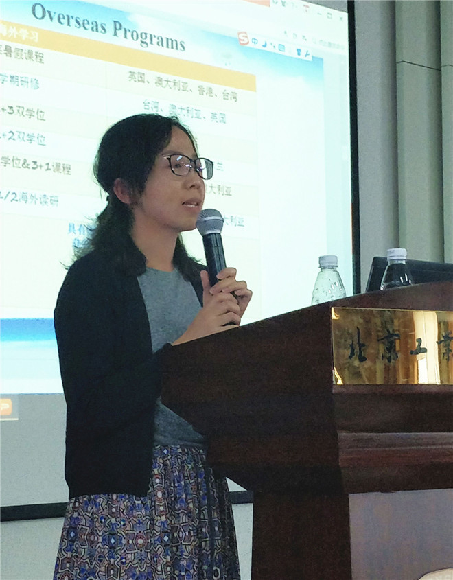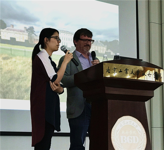 来自耿丹国际设计长期合作方、爱尔兰都柏林创意艺术学院DIT副院长Barry Sheehan为同学们介绍DIT的别样风采,通过PPT和视频展示,对海外学习有了更直观的了解。之后,王小宇和陈丽君老师介绍了国际交流项目和外出交流学习的流程、注意事项。最后,来自学生工作办公室的张淳淞、谢芳老师就大学期间行为习惯养成、素质提升等问题与同学们进行了交流。