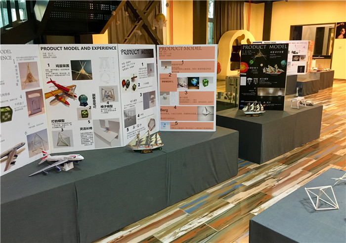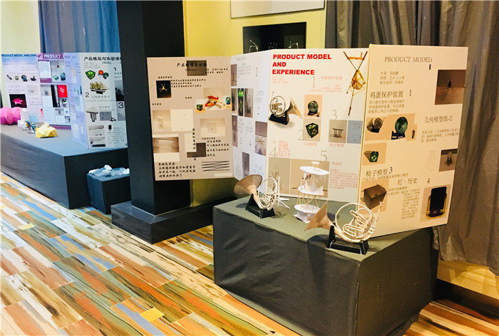 2018年6月29日, 耿丹国际设计学院产品设计专业举办“产品模型与体验”课程展览。本次展览的作品包括54名2017级艺设和戏影的学生创作的鸡蛋保护装置、基本几何形体模型、1:5椅子产品模型、灯模型、Re-design设计方案模型以及过程记录展板,课程指导老师为时晓明。