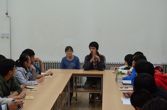 来自2011级计算机科学与技术专业的黄国瑞同学为同学们介绍学习方法,与同学们分享了自己的学习经验,尤其是高等数学和大学英语两门课程,提出在大学期间要多阅读英语,多练习写作。另外还讲到在大学期间理论知识需要与实践紧密结合起来,多参加学院组织的实习实践活动。